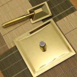 گوشی و سردوش علم دوش حمام مربع یونیورست استیل رنگ طلایی براق مجموعه 2 عددی