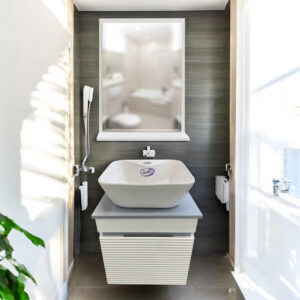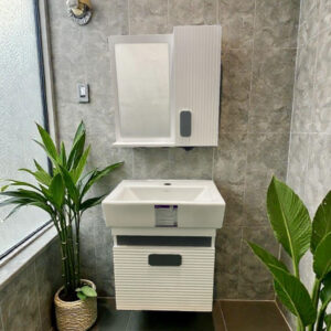 روشویی کابینتی دیواری سفید سایز 60 با سنگ چینی همراه آینه